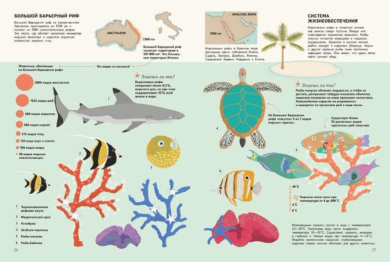 Из книги ты узнаешь о водных гигантах и карликах, о поведении стайных и одиночных рыб, о взаимовыгодном сотрудничестве морских животных и хитроумных приемах защиты от врагов. Тебе станет понятно, что такое пищевая цепь, чем питаются растения и животные, как рыбы подыскивают себе пару, для чего некоторые из них пересекают океан, почему не всегда заботятся о потомстве. Изучив проблемы океана, ты осознаешь, какой вред наносят ему люди и как можно участвовать в его защите, даже живя очень далеко от побережья.
