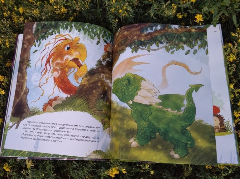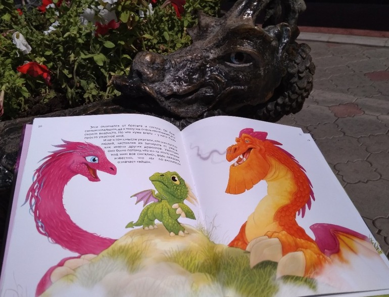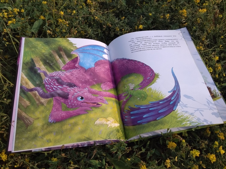 Книжка добрая, семья у дракончика очень принимающая, его понимали, ему старались помочь, но он все мучился комплексом неполноценности, страдая из-за своего "несолидного" имени. Ее хорошо читать сомневающимся в себе детям. Может, просто так поможет поднять им самооценку. Очень рекомендую как одну из самых первых книг для малышей о драконах, которую можно читать с самыми маленькими детьми.
