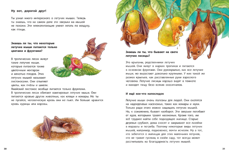 Перед вами красочные познавательные истории о летучих мышах. Где зимуют летучие мыши? Как устроены их крылья? Чем они питаются? Как охотятся? Как они «видят» в темноте? На такие и множество других вопросов маленького почемучки ответит эта книга. Она будет также полезной для младшеклассников как дополнительное чтение по предмету «Окружающий мир».
