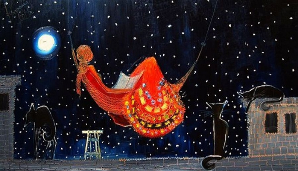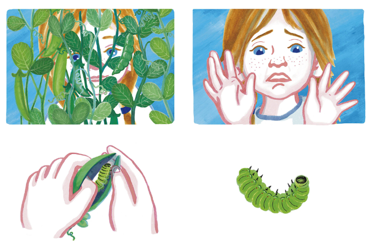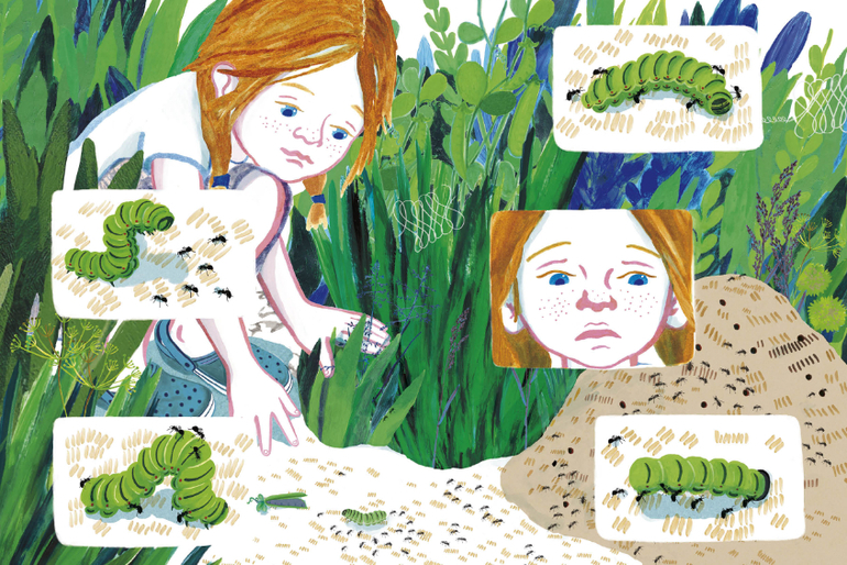 Это история о девочке, которая на даче рассматривает насекомых, ловит кузнечика и сажает его в банку - помните культовый мультфильм 80ых годов XX века "Контакт"? Вот, очень напоминает.