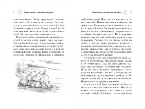 Вы готовы отправиться в увлекательное путешествие и расширить горизонт своих знаний по истории, географии и технике? В этой книге вы познакомитесь с маленькой водяной капелькой, которая много веков томилась в заточении в огромном леднике, но сумела вырваться на свободу. Вместе с капелькой вы отправитесь в удивительное путешествие: из Атлантического океана в Африку, из Европы к Босфору, от черноморского побережья в Восточную Анатолию. Она расскажет, каково быть неподвижной льдинкой и жить в леднике, плавать капелькой в океане и даже летать облачком в небе. Вы узнаете, как производится электричество на гидроэлектростанциях и как устроена водяная мельница. Вместе с капелькой вы превратитесь в снежинку и побываете на горнолыжном курорте, прольётесь дождём на плоскогорья, будете бить ключом из горного склона и даже затопите поля настоящим наводнением. В этой книге вы не только узнаете о том, как удивительно устроена наша планета, но и познакомитесь с культурой и историей Анатолии, узнаете, что символизирует двуглавый орёл и что это за традиционная игра «джирит». А ещё во время этого увлекательного путешествия вы поймёте, почему так важно беречь природу.