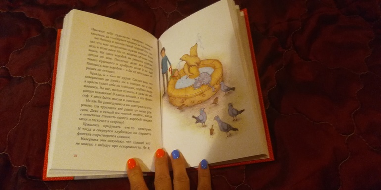 Книга очень домашняя и уютная. История про семью - дочку Асю с мамой и папой. Семья очень добрая и заботливая, со множеством животных. Кого у них только нет - и птицы, и крыса, и кот, и собака, и даже змея) Мне понравилось, как к ним пришел не читающий мальчик, и они пытались приучить его читать -