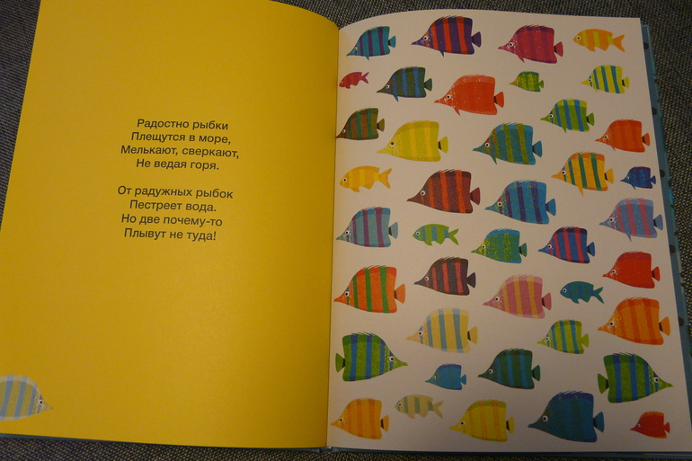 А на этом развороте нужно найти рыбок плывущих в доугую сторону