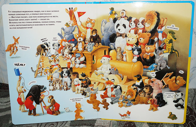 Но всё хорошее когда-нибудь заканчивается, как и эта плюшевая история. Наступает утро, и зверюшки успевают лишь сделать групповое фото на память об этом удивительном приключении.