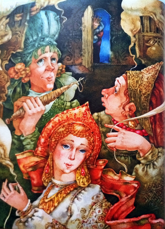 Достала этот сборник - и тут нате вам, иллюстрация с тремя девицами почему-то без окна :) Может, это, конечно, и взгляд из окна внутрь помещения, но самого окна нет как нет.