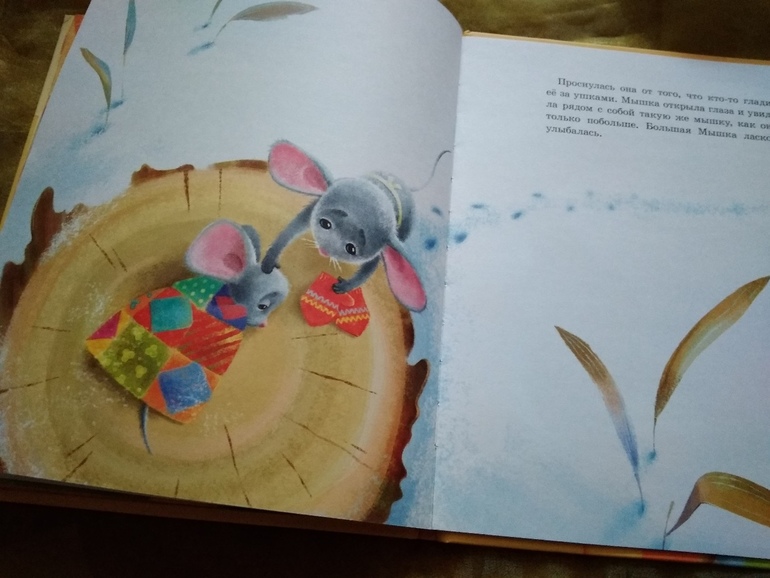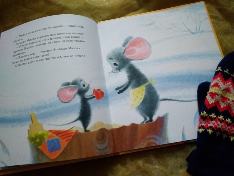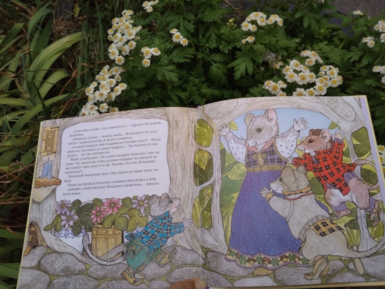 своей тонкостью прорисовки, тщательнейшей детализацией, спокойной натуральной цветовой гаммой. Брала, не задумываясь. Не потому что мышки, не потому что детско-родительские отношения, а потому что - иллюстрации. Хотя есть в них порой некоторая избыточная декоративность.