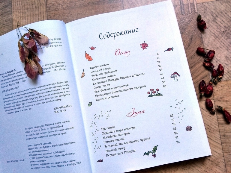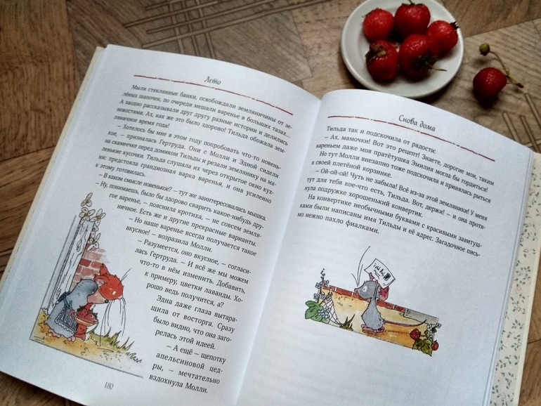 Истории эти хорошо читать выборочно "к месту", к ситуации - собираетесь ли вы на пикник, или заняться выпечкой, или вот-вот на пороге Хэллоуин, или день вдруг случился хмурый и дождливый - в книжке есть рецепт, как его скоротать. И про насморк есть, и про первый снег, а главное - про дружбу и помощь друг другу. Словом, эта книга не из тех, которую берут в библиотеке, читают за несколько вечеров и возвращают. Нет, это домашняя книга, для стояния на полке, лежания на прикроватной тумбочке, для чтения растянутого надолго-надолго - вплетенного в жизнь и маленькие домашние радости и заботы. Это книга для того, чтобы неспешно прожить ее в дошкольничестве, и возвращаться к ней в самостоятельном чтении, вытаскивая с полки на каникулах - любых, летних, осенних или зимних - совершенно без разницы.