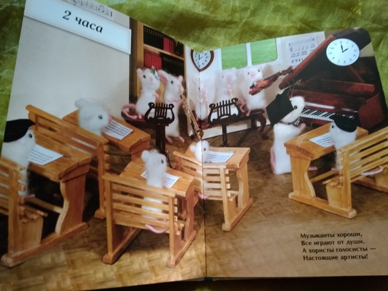 Книжка-пособие с фотоиллюстрациями для изучения времени. Про режим дня одной мышиной семьи. Или почти любой человечьей )