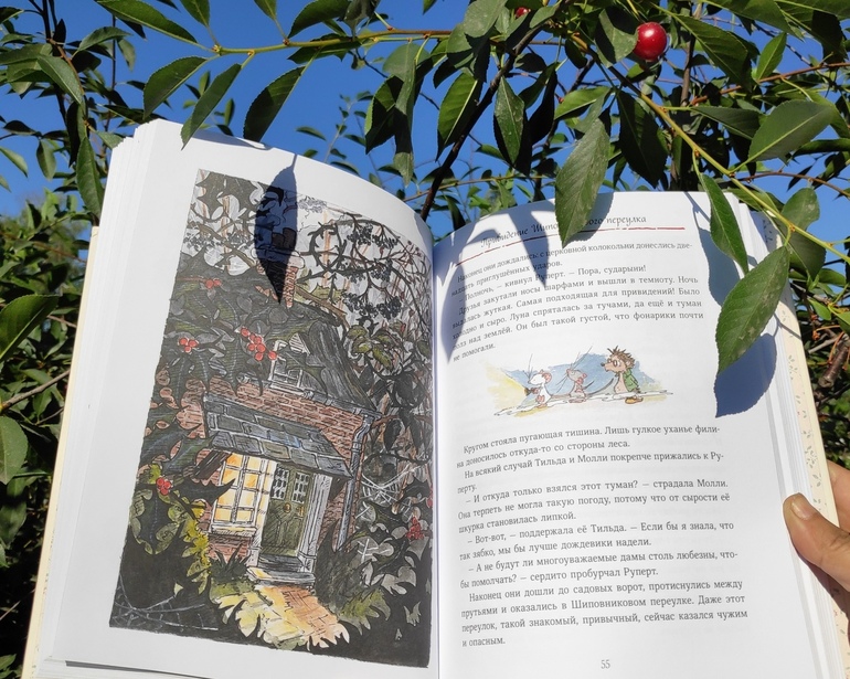 Я даже подумала, что она современница кролика Питера, Ухти-Тухти и прочего звериного населения, обитающего в ивах под всеми ветрами. Оказалось, что нет, автор помладше будет. Причем гораздо-гораздо. И история эта совсем недавняя, но жизнь в деревеньке - такая тихая, размеренная, обусловленная сменой времен года и хозяйственными хлопотами, что мне казалось - она прибыла к нам из викторианской Англии, проповедуя тамошний домострой с девизом "мой дом - моя крепость", как в Добывайках и других книгах. Особенного сюжета в книге нет, есть просто размеренное жизнеописание мышки и ее друзей. Как будто вы просто читаете расшифровку (или словесную зашифровку?) записи камеры видеонаблюдения, установленной в Шиповниковом переулке. Зверюшки суетятся по хозяйству - варят варенье, пекут пироги, участвуют в конкурсах, ходят на пикники, строят теплицу, спасаются от наводнения, делают уборку и т.д. Просто живут. Очень спокойное умиротворяющее чтение. Читать перед сном - самое мировецкое дело. Можно по чуть-чуть, чтоб растянуть на весь год, читая именно по временам года и перемежая более динамичными историями из других книг. А потом снова возвращаться в домик у церковной стены, вдыхать запахи пирогов и варенья, слушать потрескивание дров в камине и снова засыпать, побывав в гостях у старых добрых знакомых...