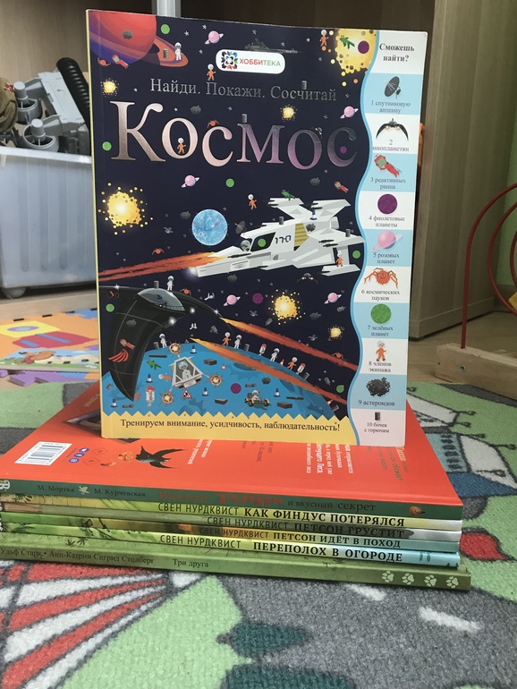 Найди,покажи ,сосчитай взяла на пробу,да и в поликлинику ходили на процедуры,надо было увлечь его минут на 10.