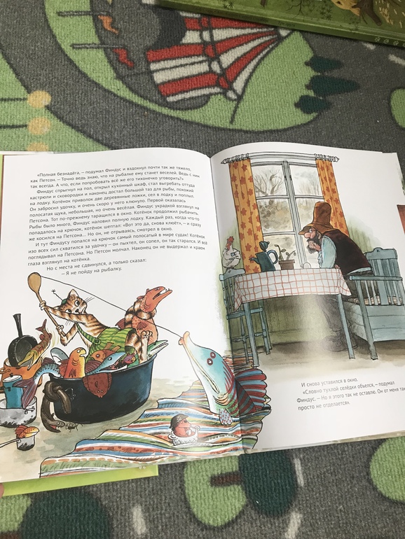 На обложке,как и на каждой страничке показаны предметы и их колличество,что спрятаны на странице.Ну вот найди и считай.Петсона начали собирать коллекцию,многие знакомы с произведением,потрясающими иллюстрациями и юмором автора.