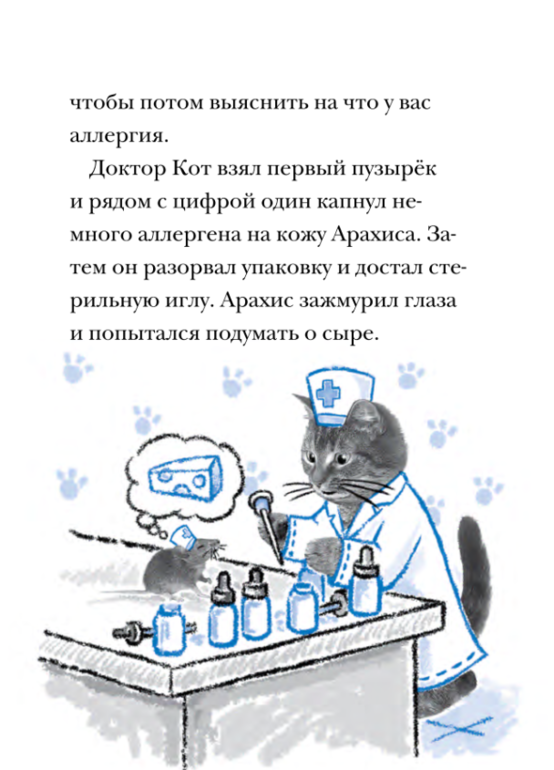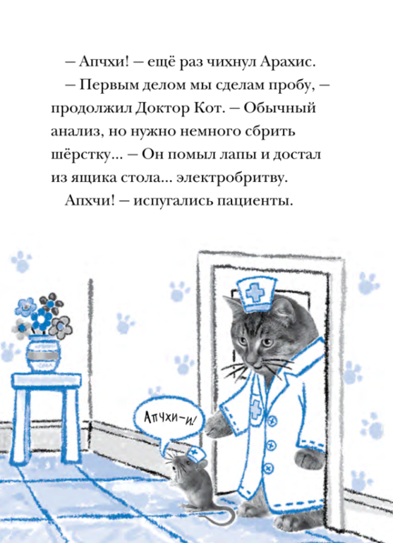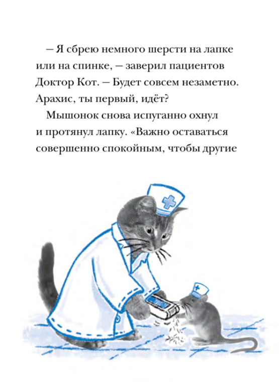 Придуманный Джейн Кларк Доктор Кот - очаровательный котёнок со стетоскопом в лапках. Путешествуя из книги в книгу, Доктор Кот вместе с мышонком Арахис помогают своим пушистым пациентам, попутно делясь с читателями правилами первой медицинской помощи. Иллюстрации напоминают кадры из мультфильмов, а медицинские термины расширяют кругозор юных читателей.