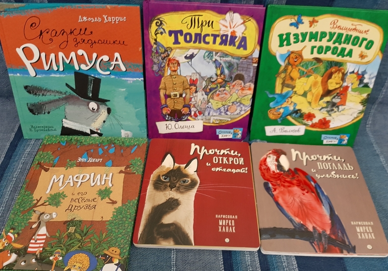 Отличные покупки. Книжки Мирко Ханака великолепные, толстый картон, прочные,рельефные, красочные, любимые сыном сейчас очень (1,3 мес) разложит по всей комнате и ходит смотрит вокруг, стихи странноватые местами, но ему главное картинки сейчас, и странички с загадками/окошечками.