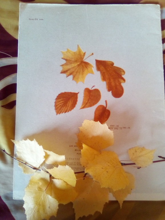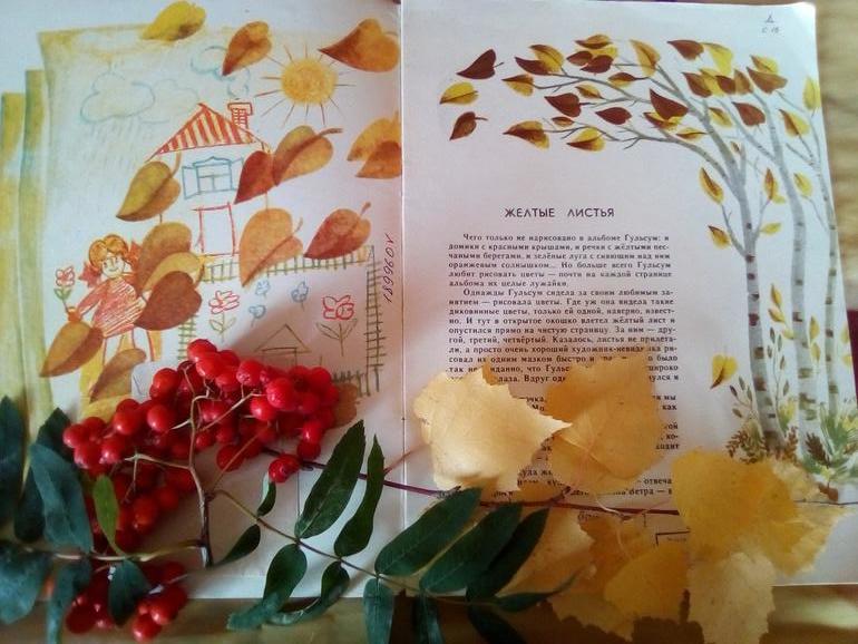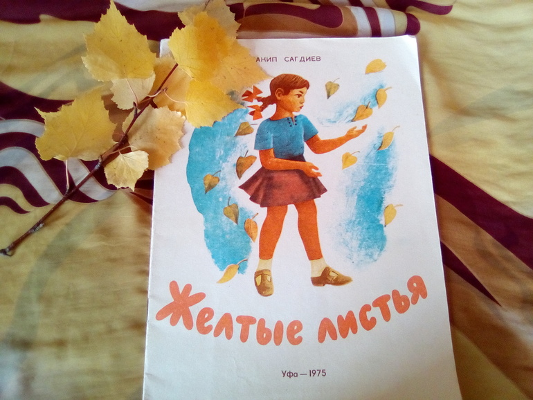 Ещё у нас есть такая "осенне-зимняя" книжка (осенне-зимняя, потому что в ней два рассказа: "Желтые листья" и "Что такое зима?"). Автор Ракип Сагдиев, Башкирское книжное издательство, 1975 год: