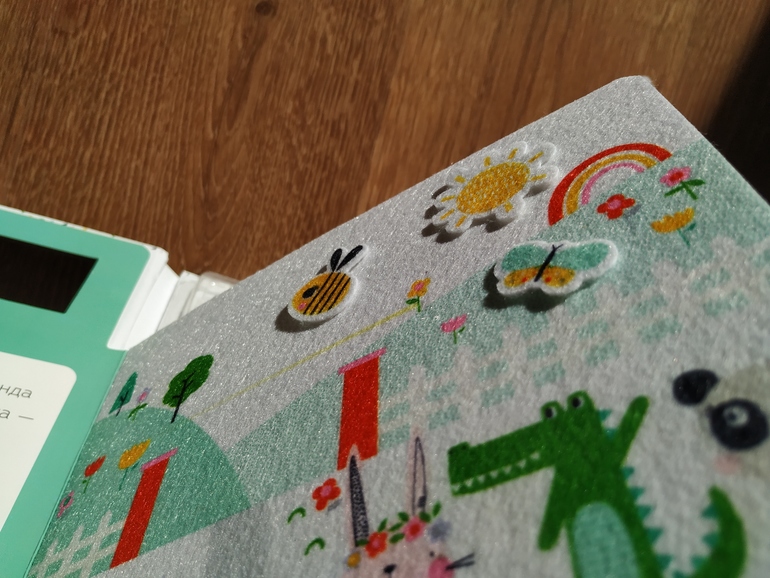 Страницы тоже фетровые, и я поначалу забеспокоилась, что без липучек всё будет отваливаться. Ан нет! Держатся при перевороте страницы. Главное, не трясти слишком сильно:)))