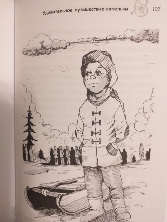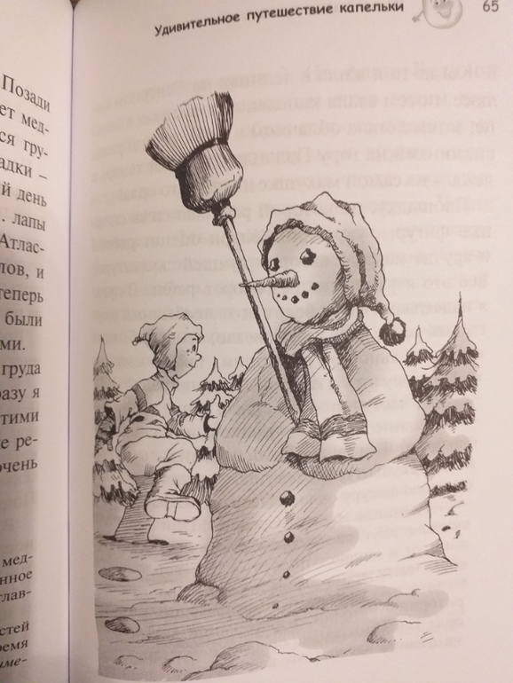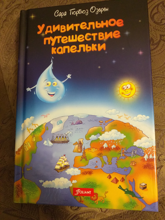 Автором выступает турецкая учительница Сара Гюрбюз Озерен, а текст приведен в переводе. Кстати, перевод мне понравился - я не спотыкалась, читалось ровно. Книга знакомит нас с маленькой капелькой, заключенной в леднике в Атлантическом океане. Случайно часть ледника откалывается и капелька отправляется в свое первое путешествие! Она растает и течение унесет ее далеко от родного дома, потом она испарится на солнце и вместе с тучами будет плавать в небе, выпадет снегом на горнолыжном курорте, опять растает, проникнет в подземные пещеры, но потом найдет выход и сможет вернуться в родное море! Увлекательно, правда? Вот и мне иногда казалось, что да. А иногда - что слишком долго и однообразно путешествие: она плыла, плыла, плыла, потом летала, летала, летала, после снегом лежала, лежала, лежала, а в конце опять текла, текла, текла...