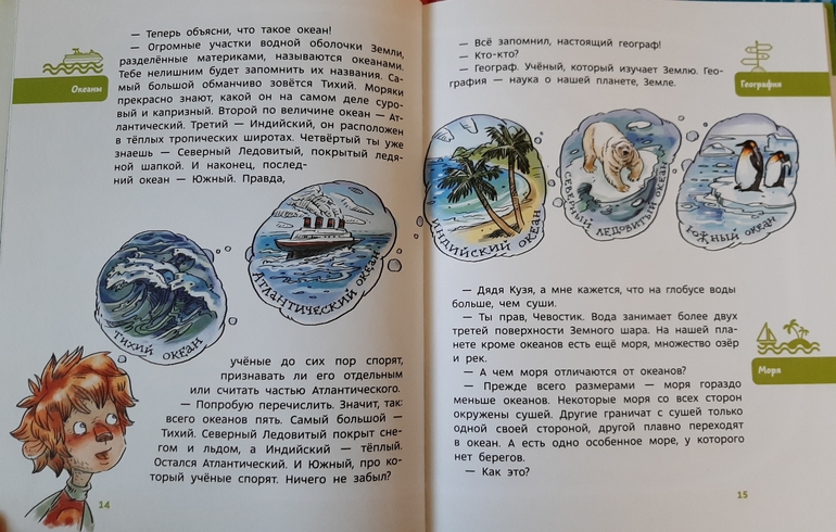 Нам сейчас эта книга очень пригодилась, после поездки на море у Дениса возникло много вопросов. Откуда появляются волны? Отчего дует ветер? Можно ли обойти море кругом?) И в этой книге мы нашли ответы на эти вопросы)