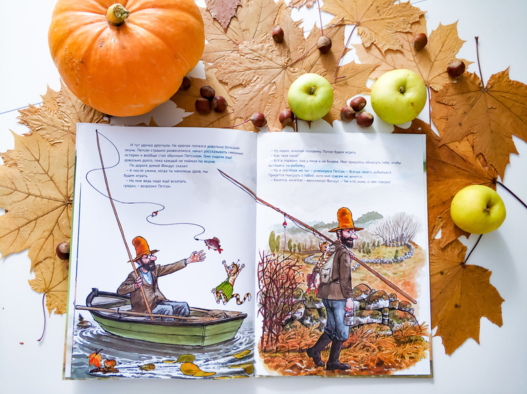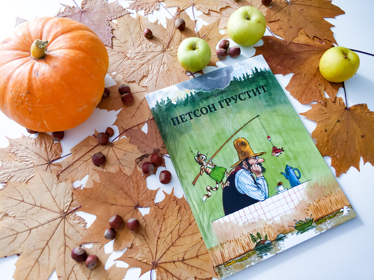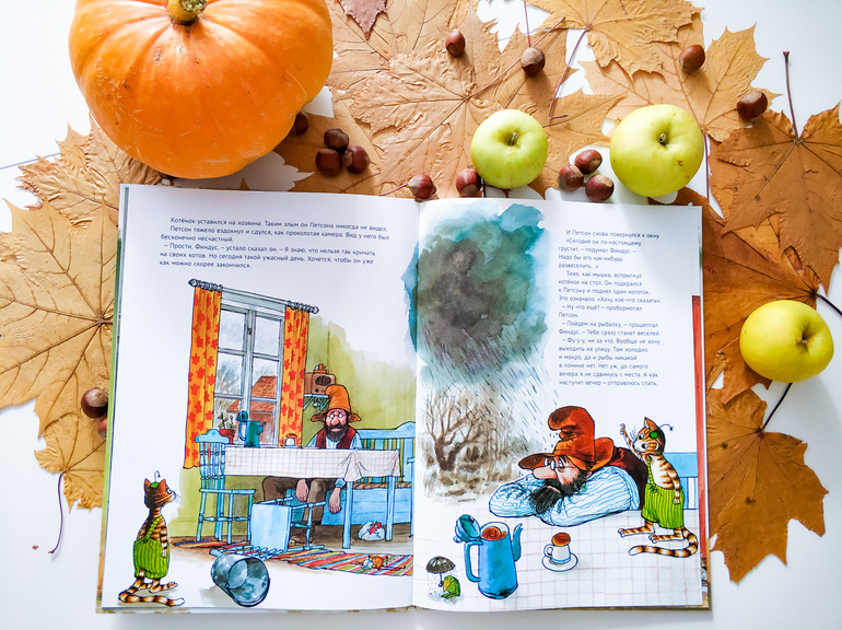 Серия книг о Петсоне и Финдусе, одна из наших любимых. Поэтому и эта книга вошла в подборку осенних любимчиков. Книга, которую хочется читать осенними прохладными днями, когда за окном идёт дождь и на улице хмуро и уныло.