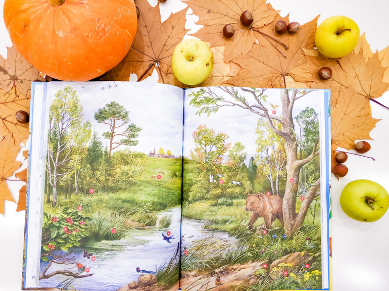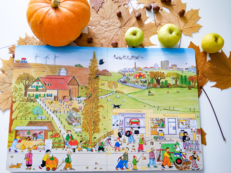 Познавательная книга на любой возраст, здесь можно проследить все времена года. В данном случае покажу осень.