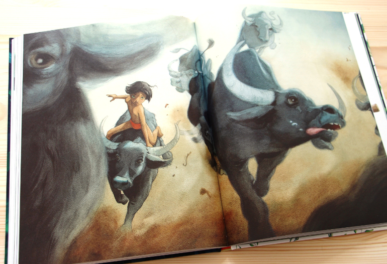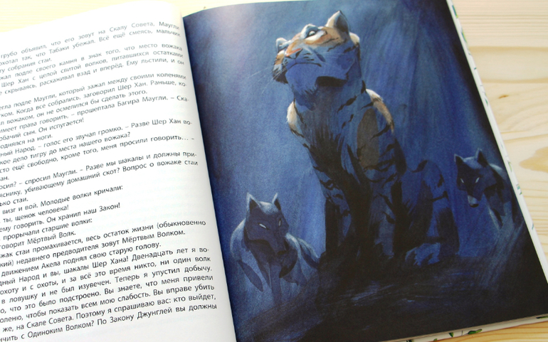 А потом мы ее читали… рассматривали… и снова читали. Иллюстрации наполнены силой персонажей, они притягивают. В них столько характера, эмоций, они живые! Особенно Шер Хан. Тигр грозен, опасен, он огромен и вместе с тем прекрасен. А каждый изгиб спины Багиры источает негу и силу. Ну вы поняли, что мы абсолютно влюблены в эти иллюстрации и я могу долго писать о них. )))
