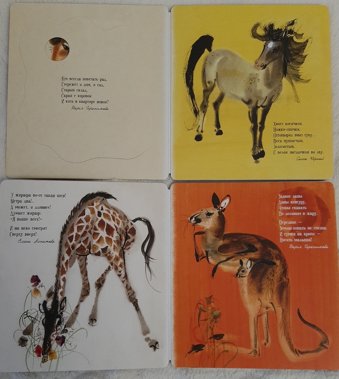 Это не передать словами, это нужно видеть! И трогать) на мой взгляд, это идеальные первые книжки- картонки отличного качества с прочными закругленными страничками , с чудесными правильными рисунками и с приятной цветовой гаммой! Стихотворное содержание нам тоже нравится, хотя там и не всегда ровная рифма, есть более понравившиеся, есть менее, но в целом читается хорошо) одно из любимых В. Орлова
