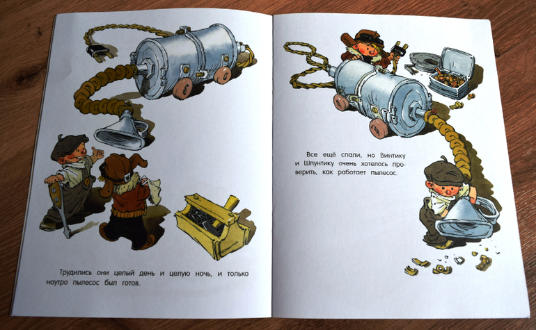 Зато история про Винтика и Шпунтика, случайно засветившаяся у меня в руках, вызвала бурю эмоций! Так понравилась книжка, что перечитываем её по несколько раз за один присест. А я вспомнила, что где-то сборник рассказов Н.Носова дома у нас есть. И тоненьких бы с рассказами отыскать.