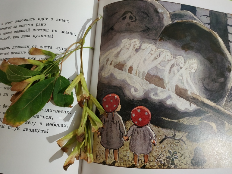 Книга "Дети лесного гнома" очень атмосферная. Любим с дочкой читать в обнимку и попивая какао. И хоть в книги описаны все времена года, но для меня эта книга именно осенняя. Одни мухоморовы шапочки чего стоят :))