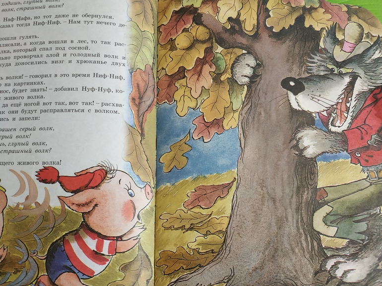 Именно эти "Три поросенка " для меня родные, из детства. В возрасте 3 лет были залюблены дочкой. Сейчас любовь подостыла, но иногда вспоминаем этих задорных поросят.