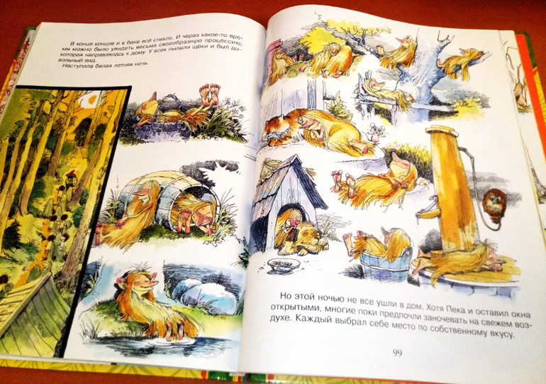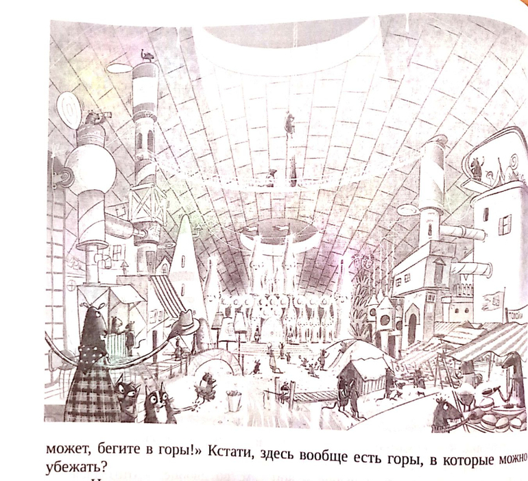 Во-первых, глядя на большой объем иллюстраций относительно текста, я опасалась, что мы эту книги уже переросли. Оказалось, что вовсе нет и вообще произведение довольно философское. На 5+, как минимум.