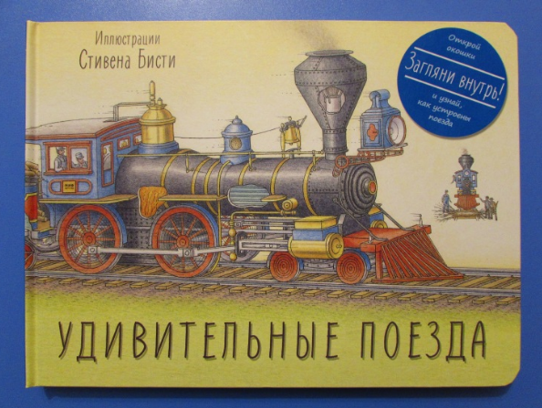 «Удивительные поезда» - это энциклопедия с окошками от издательства МИФ.