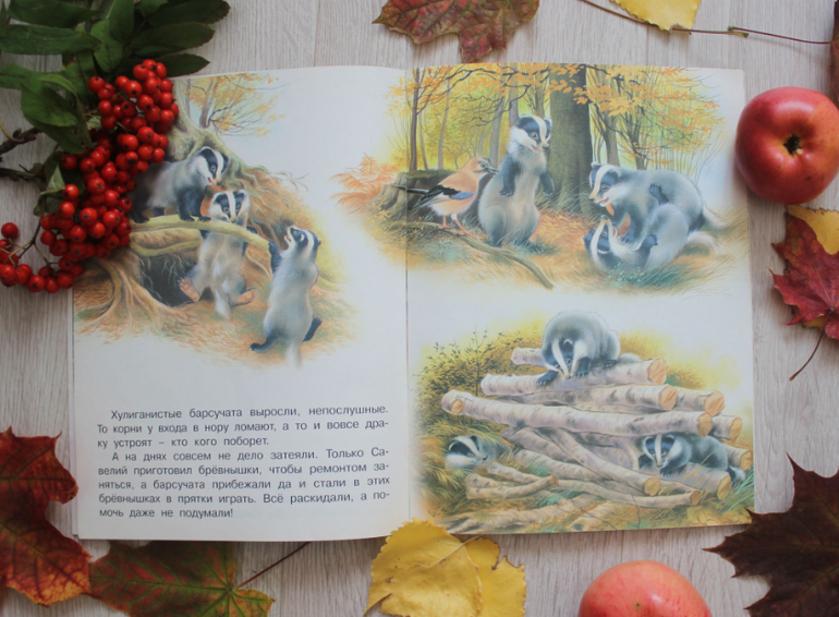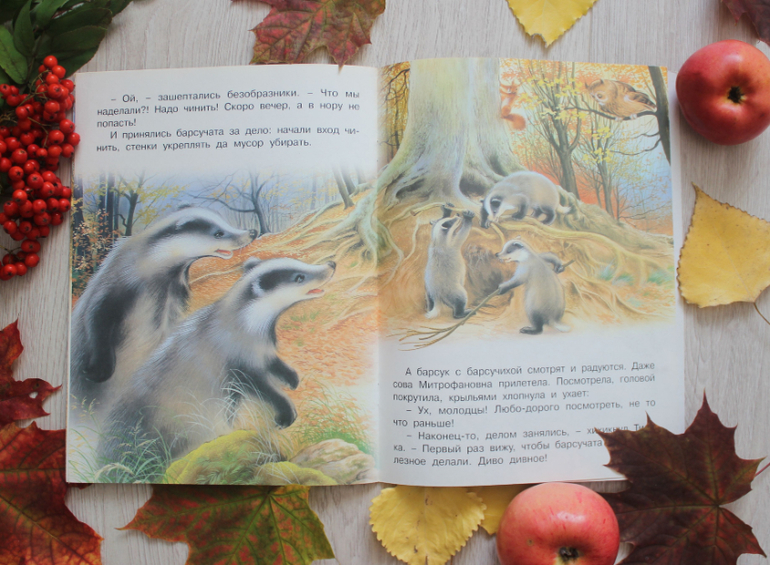 «Непослушные барсучата». Поучительная история на фоне осеннего леса о проказниках-барсучатах.