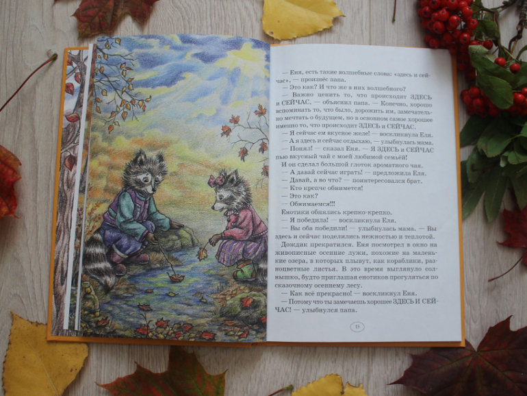 Наша первая осенняя книга: "Еня и Еля . Осенние истории" Анна Гончарова. В нашей домашней библиотеке достаточно много книг про этих енотиков. Книга небольшого формата, иллюстрации очень красивые, атмосферные. Сами истории добрые, поучительные, повествование неспешное. Эти сказки прекрасно подойдут для чтения перед сном.