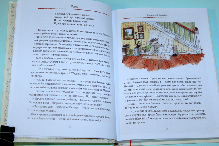 В книге четыре части, на каждое время года. Истории плавно перетекают одна в другую. Так что, книга на все времена! Её здорово читать как зимой, завернувшись в одеяло, так и летом, лежа на берегу речки.) Нежные иллюстрации автора прекрасно дополняют текст!