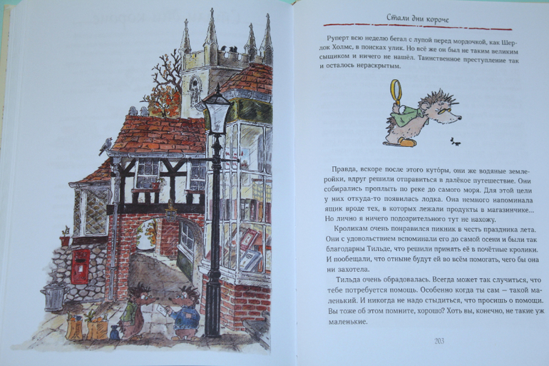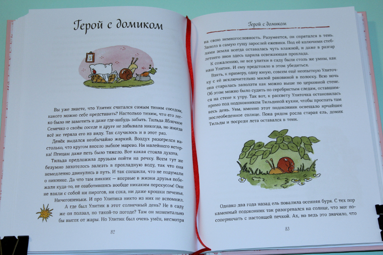 Мне понравилось, что во второй книге больше внимания уделено второстепенным героям. Если в первой части Робин зарянка не участвовал ни в каких приключениях, а прилетал только полакомиться вкусняшками во время пикника, то в этой книге ему посвящен отдельный рассказ! Этот пернатый красавец обзавелся семьей, у них с женой вылупилось четыре птеничка, которые довольно быстро выросли и начали самостоятельную жизнь. Роберт оказался заботливым отцом, который очень гордился своими детьми. Ещё рассказывается про Улитика. После ужасного наводнения, которое случилось в первой книге, Улитик перебрался жить к Тильде. Он был самым тихим и незаметным соседом, которого только можно себе представить, и кто бы мог подумать, что в его груди бьется доброе и отважное сердце! Во второй книге об этом станет известно всем, ведь Улитик спасет от верной гибели молодую улиточку.