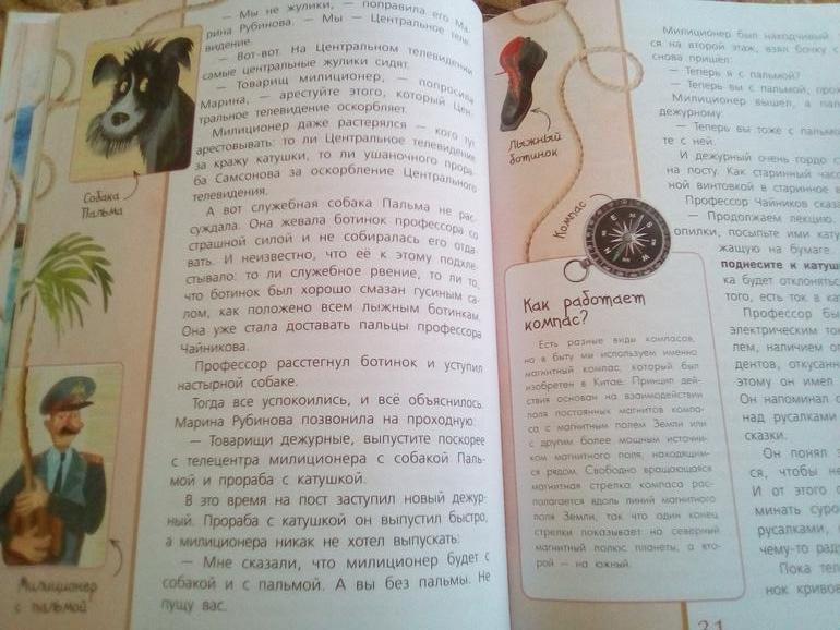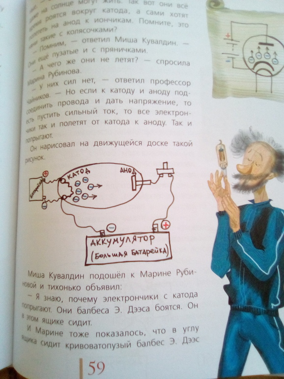 Впрочем, нет ничего удивительного - на книге указана возрастная категория "Для среднего и старшего школьного возраста", и, действительно - книга может очень пригодиться тогда, когда на уроках физики в школе начнутся темы, связанные с электричеством. Мальчишки же мои вряд ли что-то поняли про устройство радиоприборов, но с удовольствием следили за забавными приключениям профессора, молодого редактора Марины Рубиновой и помощника Миши Кувалдина. Думаю, что в более старших классах мы ещё вернемся к этой книжке и прочтем её более вдумчиво, не только веселясь, но и разбираясь в таких вопросах, как что такое катушки, конденсаторы, диоды и колебания высокой частоты.