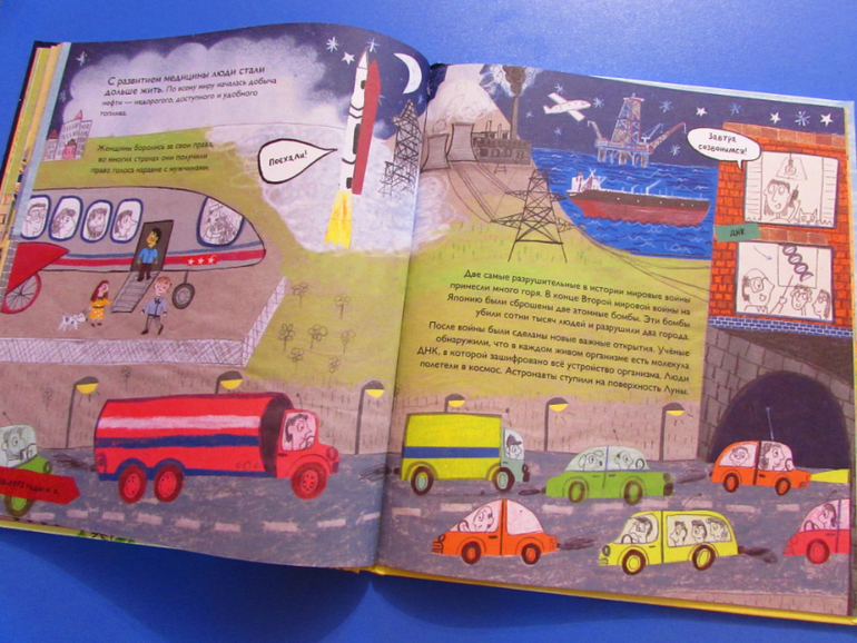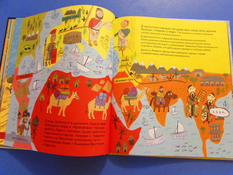 Наскальные рисунки, мамонты, неандертальцы, шелковый путь, телескоп, астроном, ракеты, роботы и многое другое.
