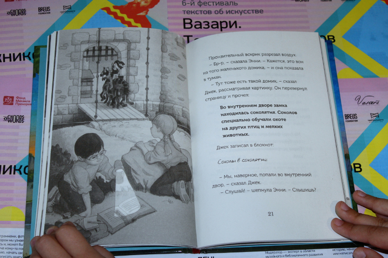 «Волшебный дом на дереве». Купили "Рыцарь на заре". Дочка её тем же вечером и прочитала. Книга просто отлично подойдет начинающим читателям. Комфортный шрифт, короткие строчки, хороший межстрочный интервал, плюс иллюстрации на каждой странице. Благодаря этому книга легко читается самостоятельно. В книге приводятся познавательные факты, они выделены жирным шрифтом, это мне тоже понравилось. Сам сюжет насыщен событиями. Брат с сестрой отправляются в опасное путешествие во времени. У сестры напрочь отсутствует инстинкт самосохранения, наверное потому что ей всего 7 лет. Старший брат переживает за нее, он против этих путешествий, но отпустить её одну не может, поэтому путешествуют они вместе.)