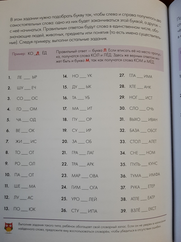 И очаровательные совята Софи и Плато помогут в этом. Перед каждым новым видом задания они рассказывают, как выполнять и приводят пример. Но сначала они обращаются к ребятам с сопутствующим словам, где дают рекомендации , как лучше работать с книгой!