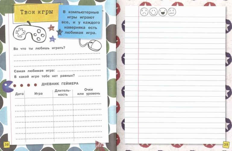Здесь ты найдёшь забавные викторины, игры и рецепты, множество интересных идей и чистые страницы для важных записей.