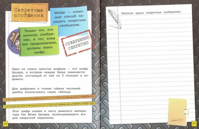 - потрясающую ручку с невидимыми чернилами (чтобы прочитать тайные записи подсвети страничку фонариком!)
