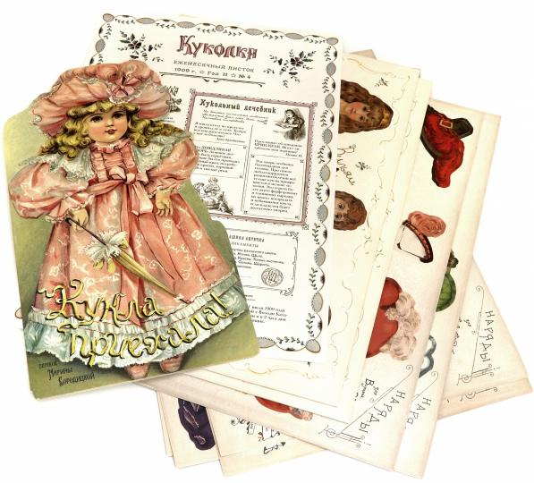 Какая нарядная кукла выглядывает из конверта! Кружева, и шелковые ленты, и зонтик, и шляпка... Ну прелесть что за шляпка!