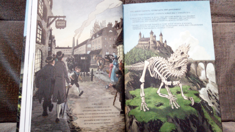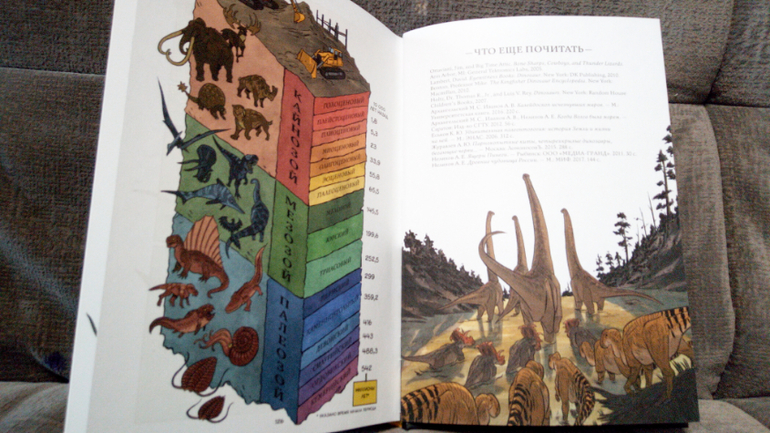 Огромное количество иллюстраций, текст книги содержит достаточно большое количество исторических данных как о жизни динозавров на планете, так и о становлении науки "палеонтология". Интересно и увлекает, но на некоторых страницах мелкие черные буковки просто сливаются с коричневыми страницами.
