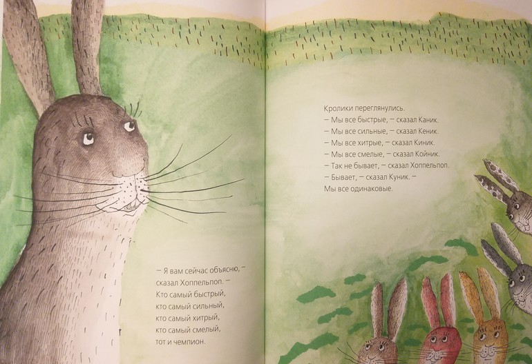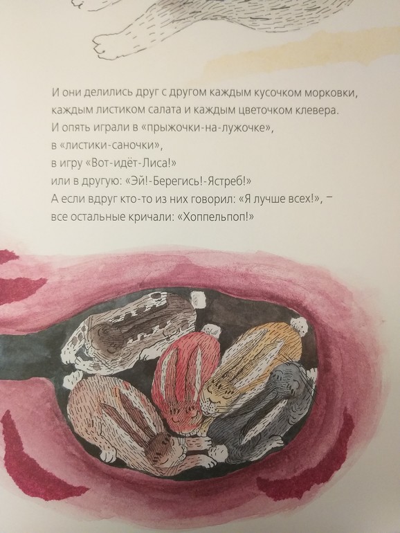 Снова в их норе воцарился мир и покой. А если кто-то из кроликов пытался зазнаться, другие кричали ему: «Хоппельпоп!»