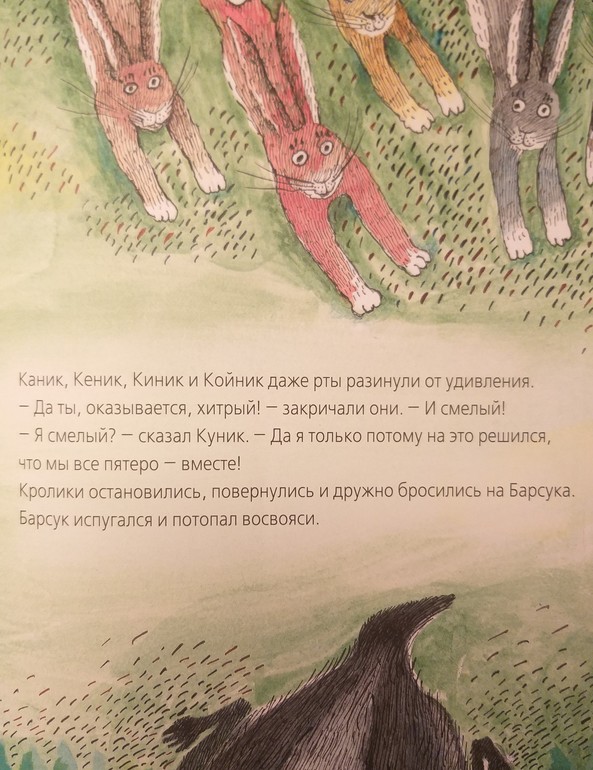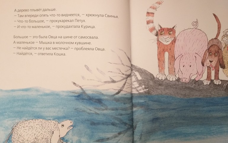 Я от книги в восторге. Во-первых, мне очень импонирует ее посыл. Вместе мы можем больше. Вместе мы направим бревно к берегу. Найдем силы убежать от глупого хозяина. Спасемся от барсука и стихии. Не нужно быть героем-одиночкой, нужно просто помогать друг другу.