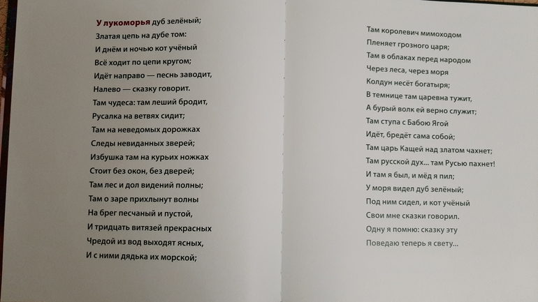 Называет ее книга про кота, который ходит по цепи и сказки рассказывает)