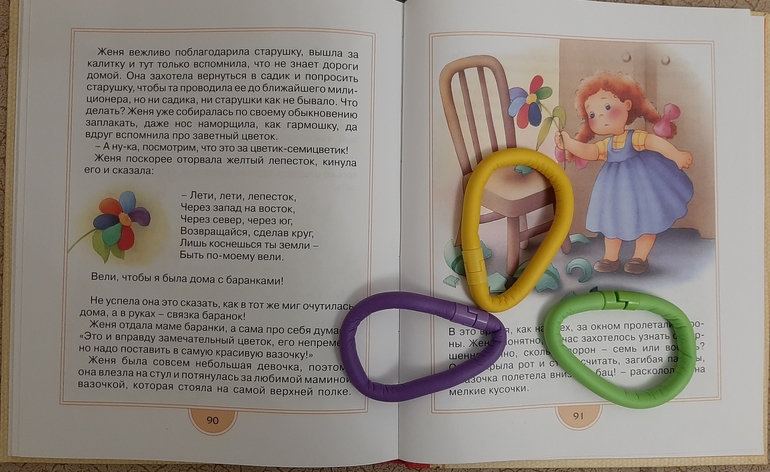 Лети, лети лепесток, через запад на восток, и далее по тексту, вели чтобы мама сама убрала все игрушки! Очень расстраивался, что так не работает, думает, где бы ему такую бабушку волшебницу с садом найти) а у его любимого лисенка есть волшебный последний лепесток, который исполняет желание и возвращается🙈