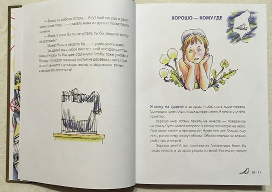 Книга стояла на полке давно, а тут я что-то дай да и возьми ее читать.) Захотелось что-то историй про детей.) Очень классная книга, много иллюстраций, девчонки слушали и просили еще и еще.) Рассказы про дела и жизнь обычных ребят.) Какие-то истории на постарше, какие-то на помладше. Моя четвероклассница также с удовольствием слушала. Думаю, можно читать лет с 6-ти.