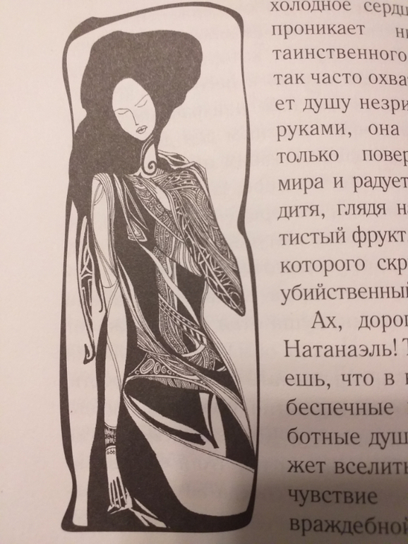Конечно, сказка оказалась не такой страшной на мой придирчивый взгляд, но представляю, как она пощекотала нервы первому поколению ее читателей! Молодой человек Натанаэль отравляется на учебу в другой город и случайно сталкивается с человеком из детства, долгие годы преследовавшим его во сне и виновным, по его мнению, в смерти отца. Или человек просто похож на его воспоминание?