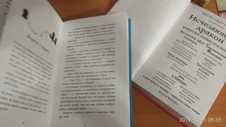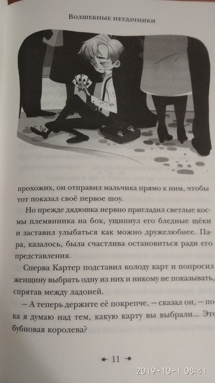 Когда я прочитала в Катином отзыве про эту книгу, мне очень захотелось ее сыну. Влад любит фокусы, отзывы прекрасные. Моя радость была не долгой. Влад отказался читать, и иллюстрации не те, и названия глав, а главное хочется взять и почитать Школу Ужасов. Но у этой книги была вторая попытка и очень удачная. Книга была прочитана, и даже в последний день перечитывались интересные моменты, один фокус был показал, хоть и не очень удачно. Я сама книгу не читала, так что лучше воспользоваться Катиным отзывом и просто поверить впечатлениям сына, что книга интересная. В следующий первый понедельник месяца иду в магазин за продолжением. Формат книги небольшой, качество вполне хорошее.