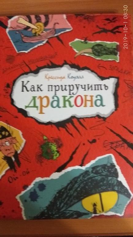 В первый понедельник месяца в нашем местном книжном магазине происходит распродажа, всё со скидкой 30%. Бюджет был сильно ограничен, и я предложила Владику выбрать одну недорогую книгу. Он выбрал Как приручить дракона. Мягкая обложка, не очень привлекательные картинки, сюжет от мультика отличается. Юным викингам надо пройти испытание: поймать дракона, а потом его приручить. Воруют они маленьких драконов из драконьих ясель (что мне уже категорично не нравится) и потом предстоит самое сложное - приручение. Ну что, сын сам выбрал книгу, сам прочитал. Ему понравилось. Потом посмотрели мультик первую и вторую часть.